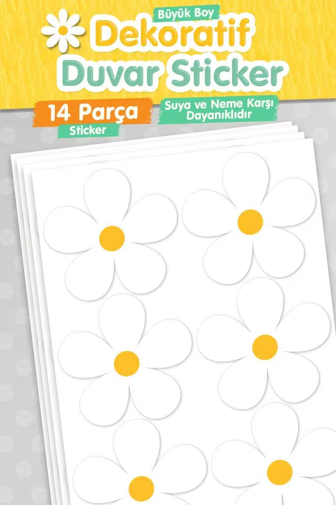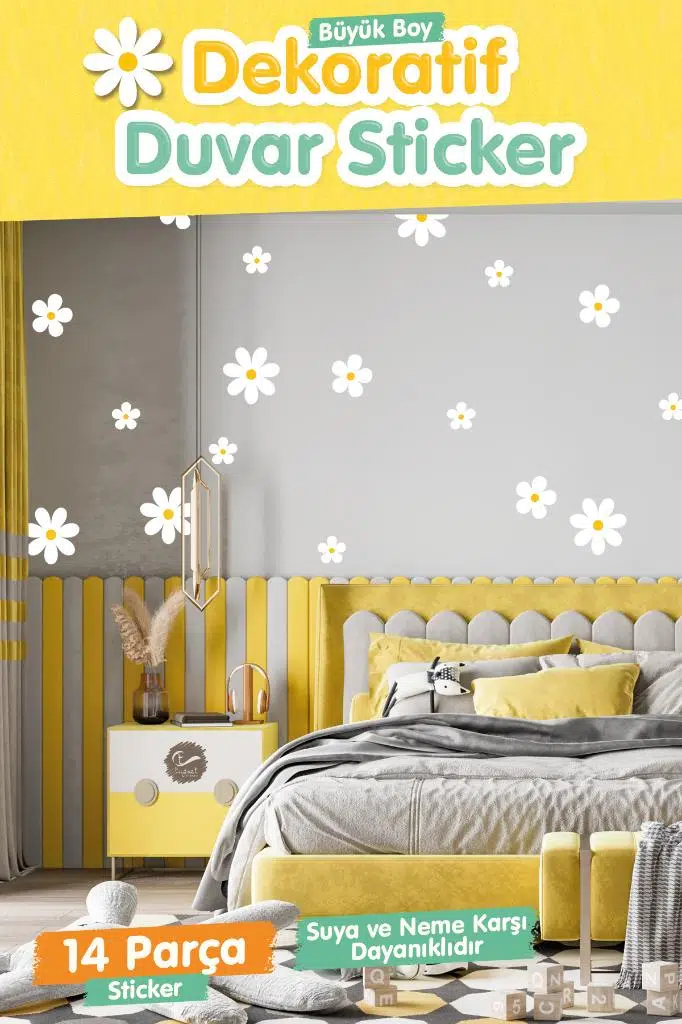 | Etiketler | 15 Adet Büyük Boy Dekoratif Papatya Çocuk Odası Duvar Dekorasyon Sticker Seti |