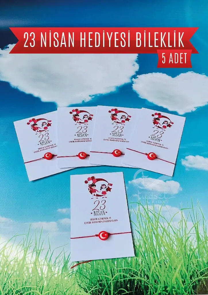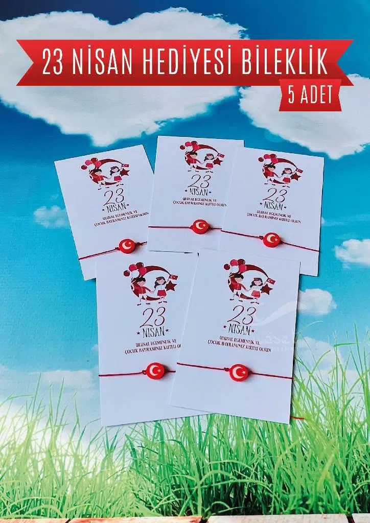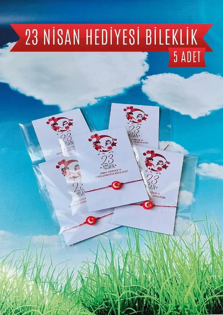 5 ADET Paketli 23 Nisan Çocuk Bayramı Hediyesi Fiyatıdır. Paket içerisinde 5 adet Ayyıldız bileklik ve 23 Nisan Temalı kart bulunmaktadır./ Çocuklarımız için hazırladığımız hediye ile siz de onların mutluluğuna ortak olun.