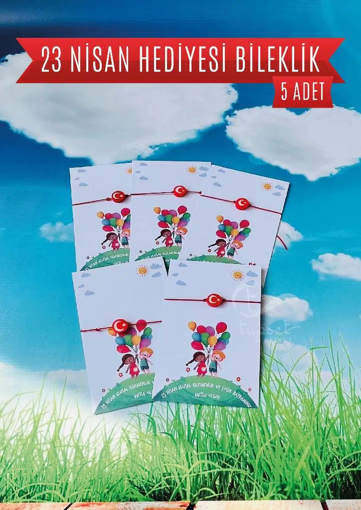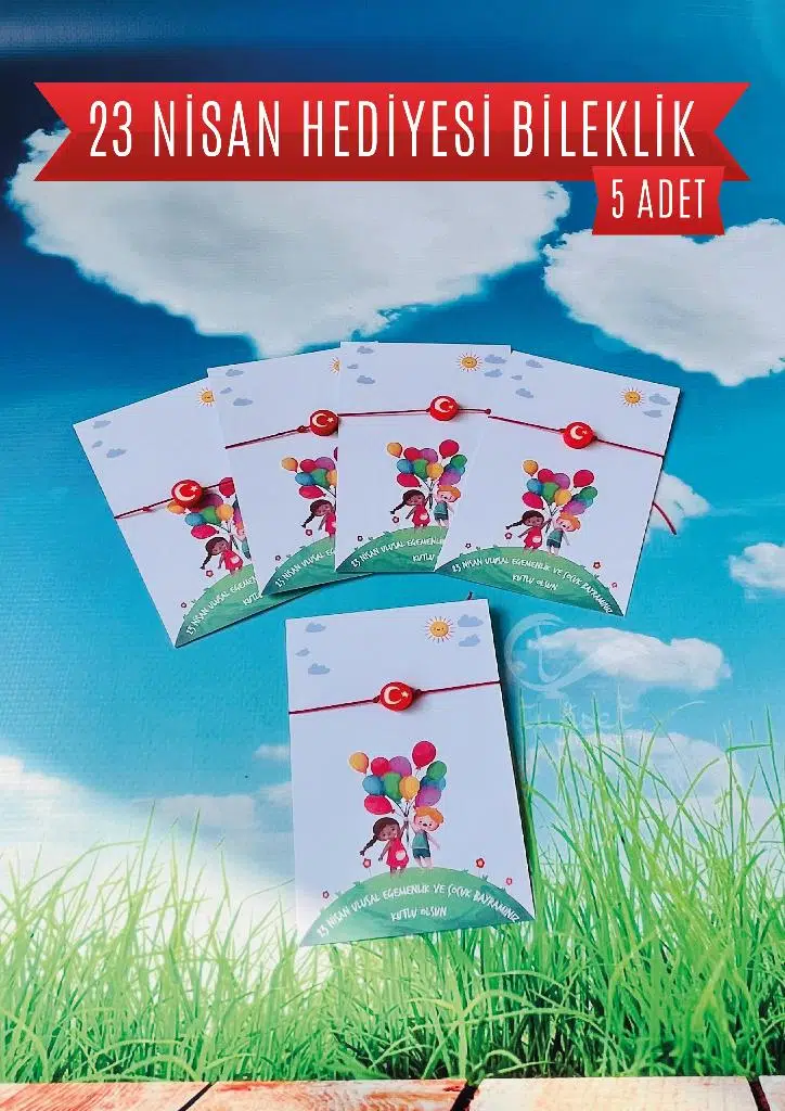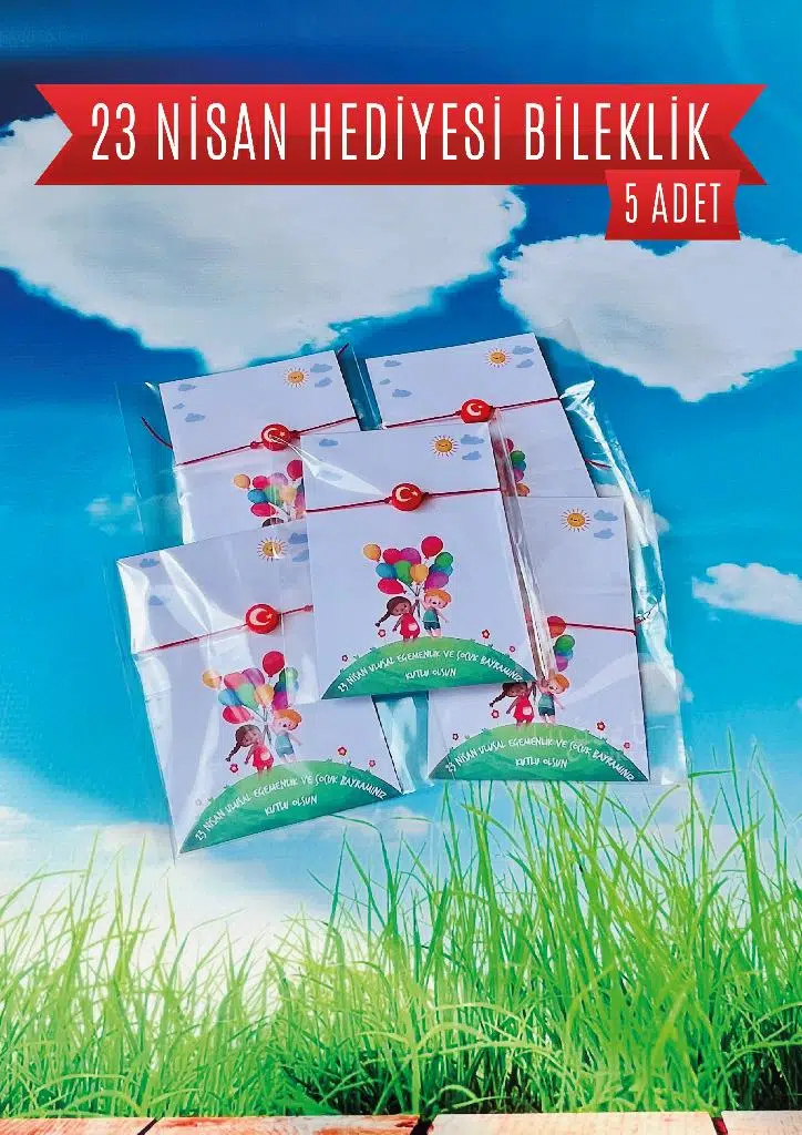 5 ADET Paketli 23 Nisan Çocuk Bayramı Hediyesi Fiyatıdır. Paket içerisinde 5 adet Ayyıldız bileklik ve 23 Nisan Temalı kart bulunmaktadır./ Çocuklarımız için hazırladığımız hediye ile siz de onların mutluluğuna ortak olun.
