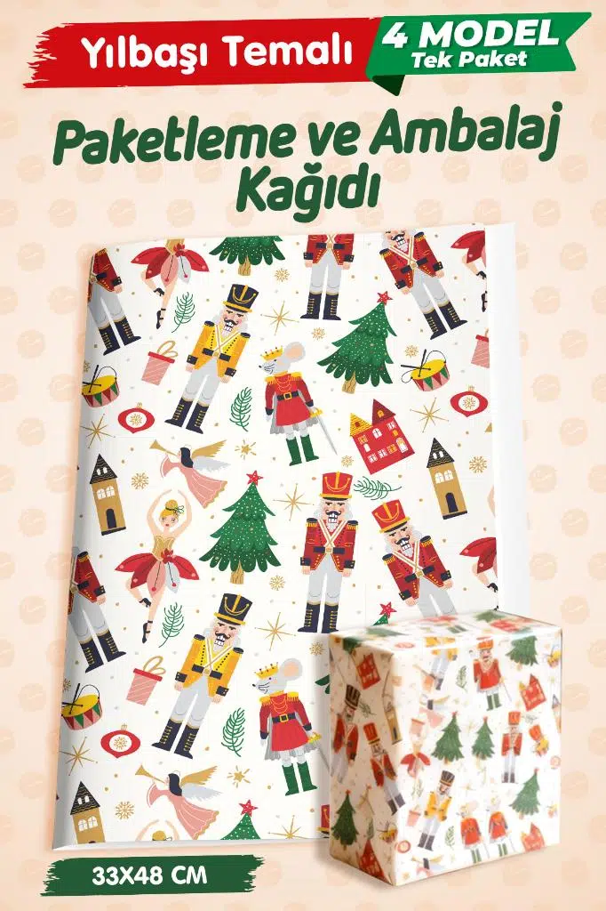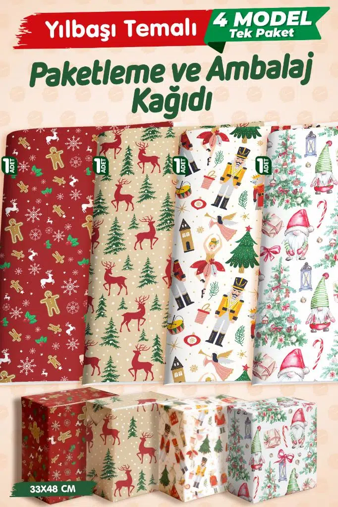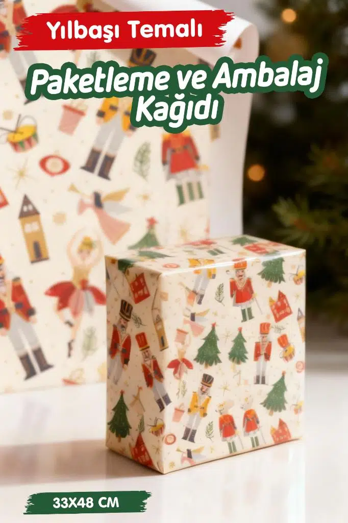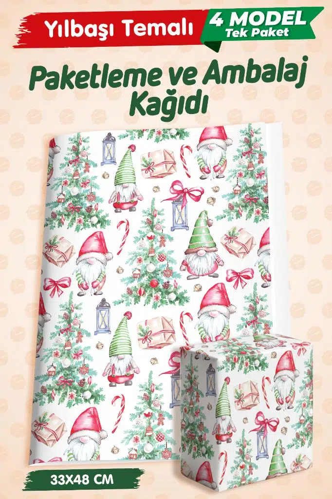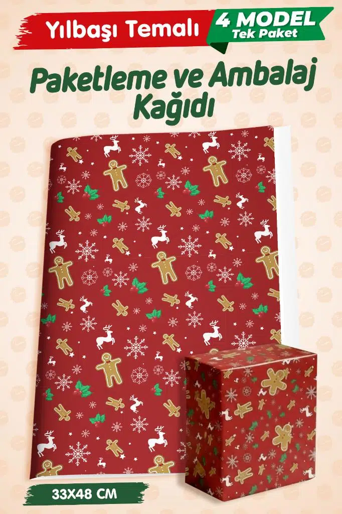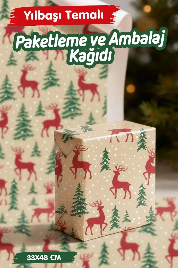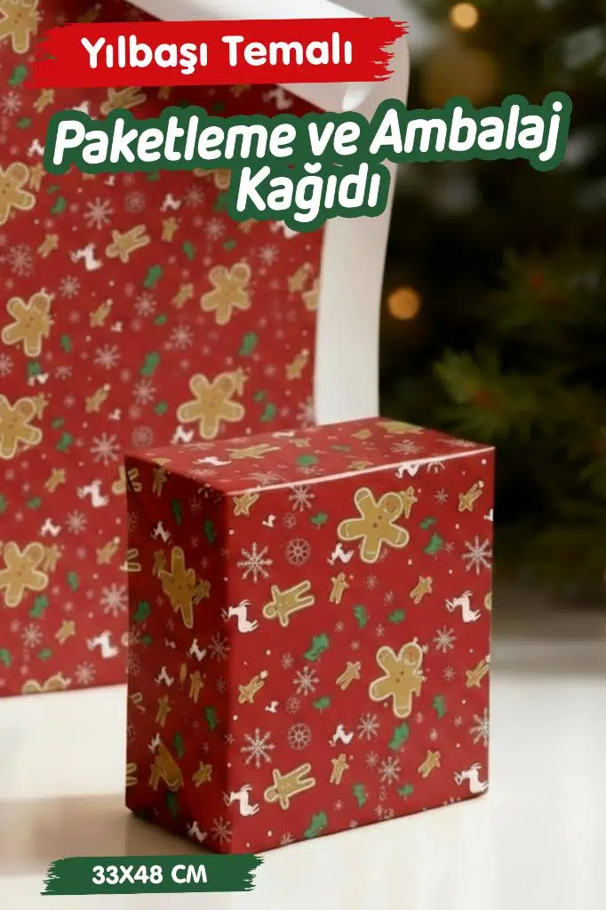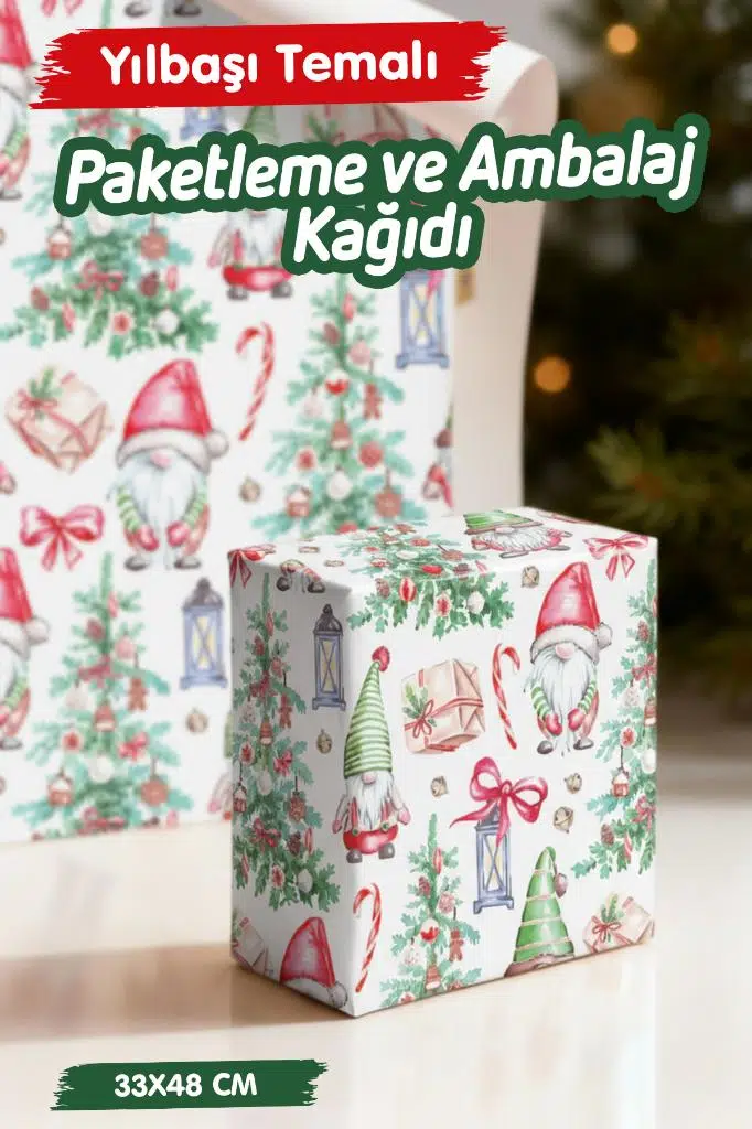 - 33x48 cm boyutlarındaki bu paketleme kağıdı, hediyelerinizi zarif bir şekilde sararak yılbaşı atmosferini yansıtır.