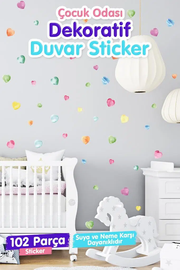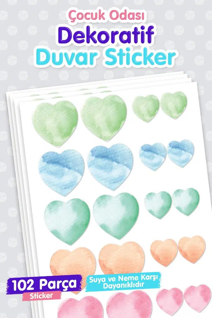 | Etiketler | 5 Ve 3 Cm Nature Suluboya Kalp Çocuk Odası Duvar Sticker Seti |