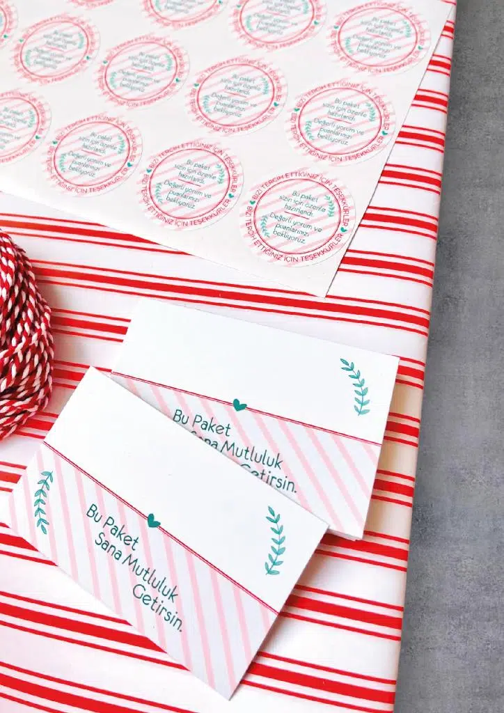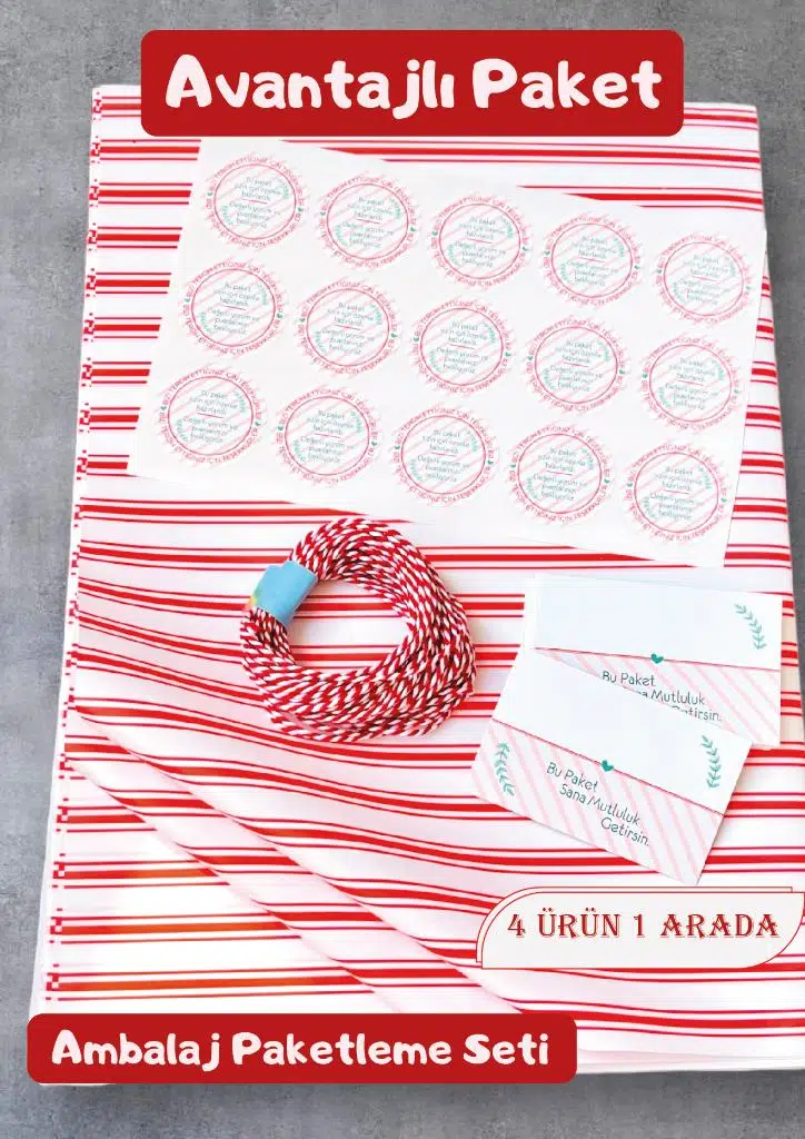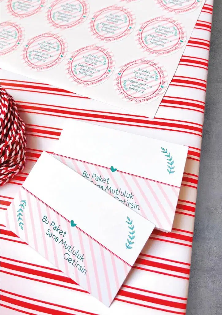 | Etiketler | Ambalaj Paketleme Seti Kiti - (Sticker , Not Kartı , Paketleme Kağıdı , Paketleme bağlama ipi) |