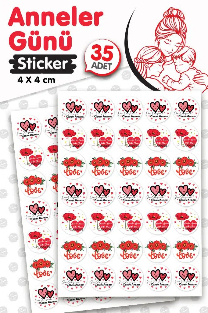 | Etiketler | Anneler Günü Sticker Etiket 4cm 35 adet Anneler Günü Hediye Etiketi |