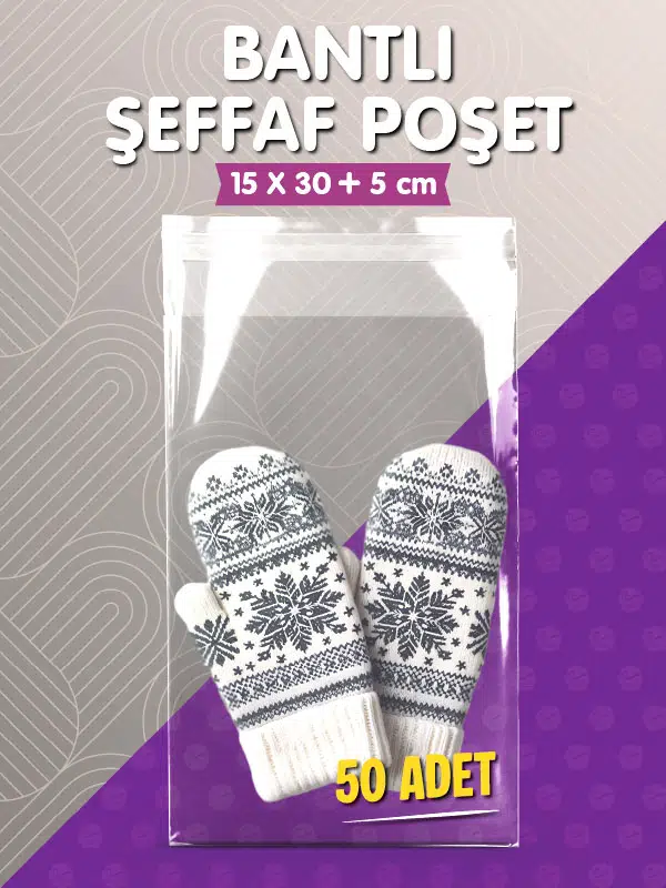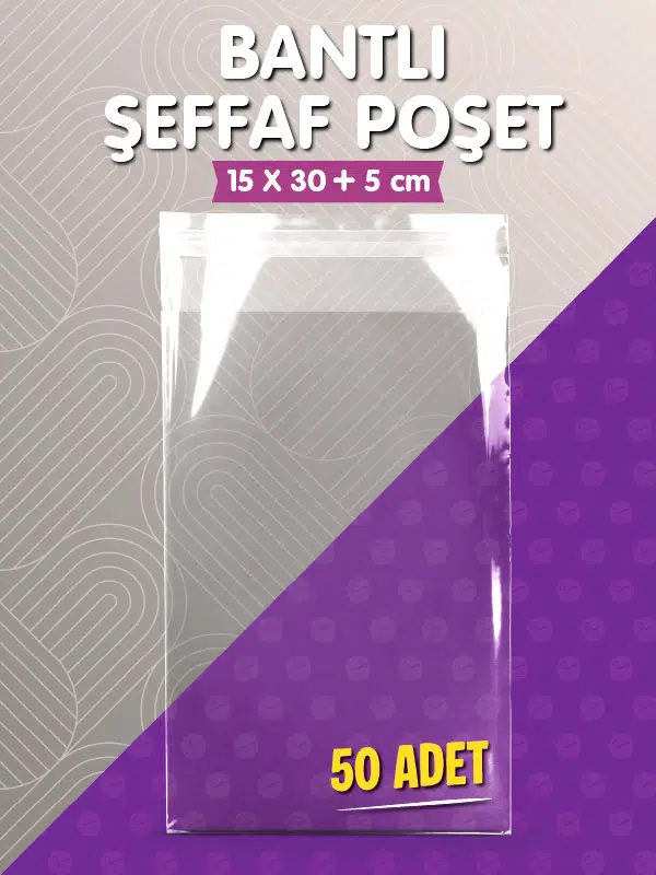 | Etiketler | Bantlı Şeffaf Poşet (15x30+5cm) 50 Adet Parlak Jelatin Paket Hediye Poşeti |