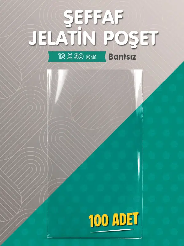 | Etiketler | Bantsız Şeffaf Poşet (13X30cm) 100 Adet Parlak Jelatin Paket Hediye Poşeti |