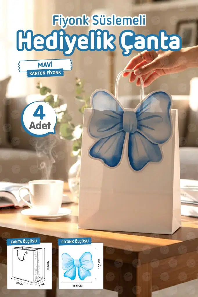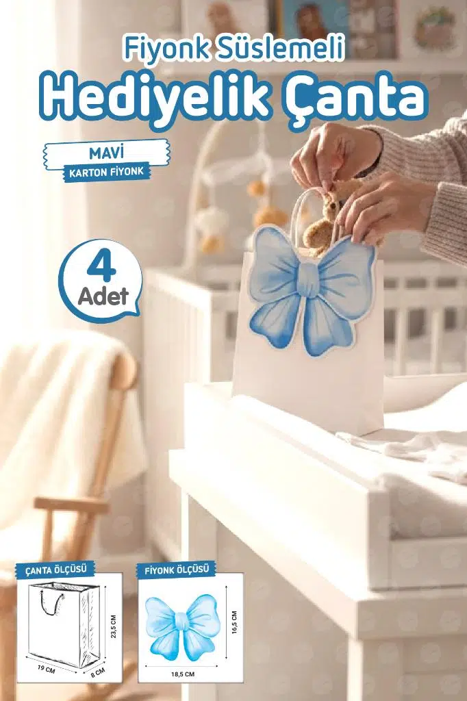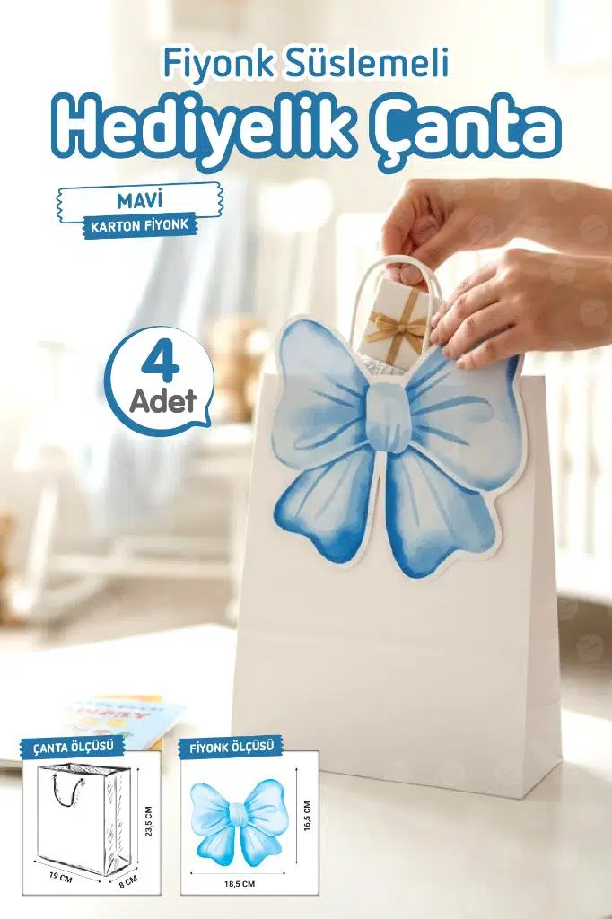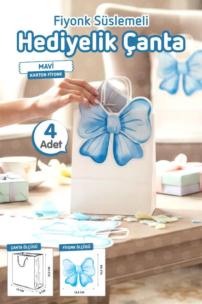 | Etiketler | Burgu Saplı Karton Kurdeleli Çanta 4 adet Hediye Paketi Çanta Poşet (Mavi)doğum günü, düğün, bebek partisi |