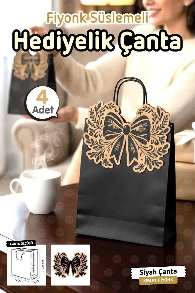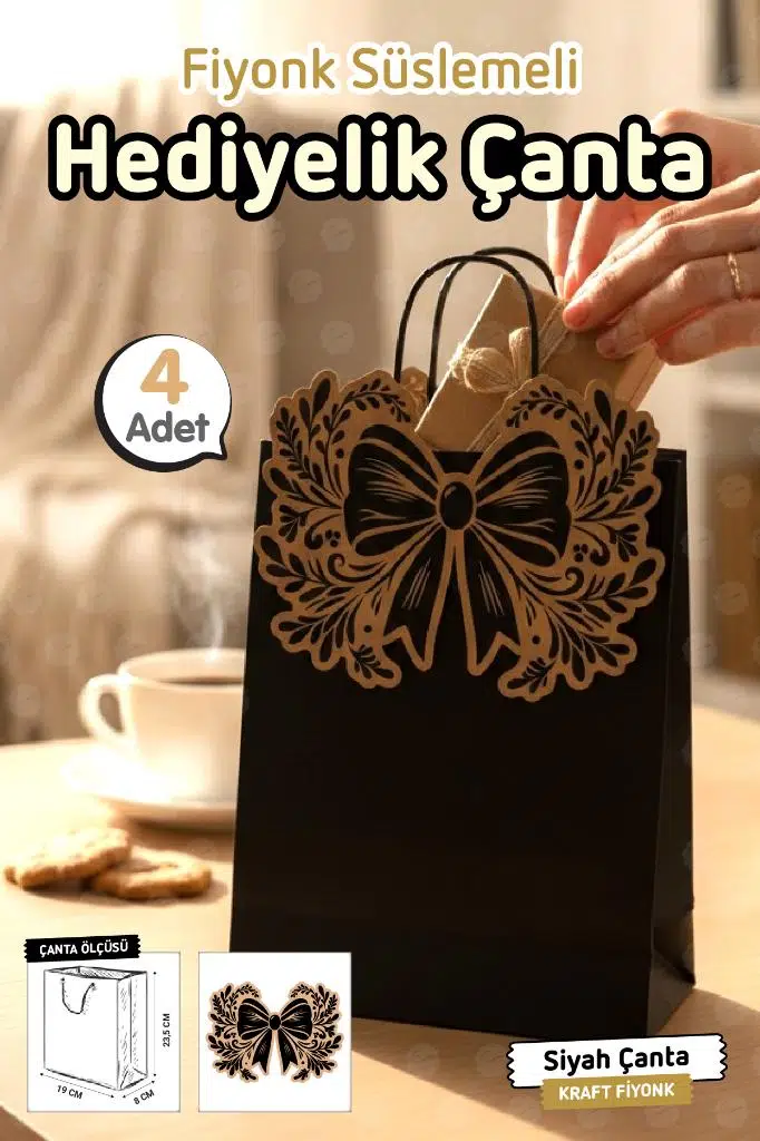 | Etiketler | Burgu Saplı Karton Kurdeleli Kraft Siyah Çanta 4 adet Hediye Paketi Çanta (Siyah) Nişan Düğün Parti Hediyelik Çanta |