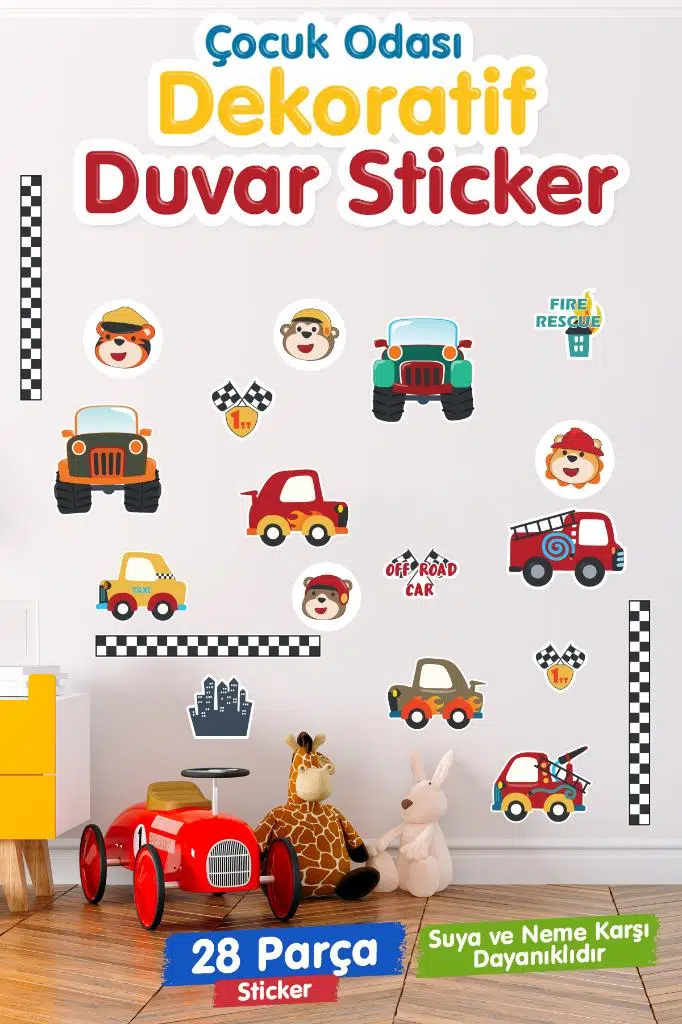 | Etiketler | Çocuk Odası Duvar Sticker Seti Doğada Araba İtfaiye Taksi Yarış Temalı |