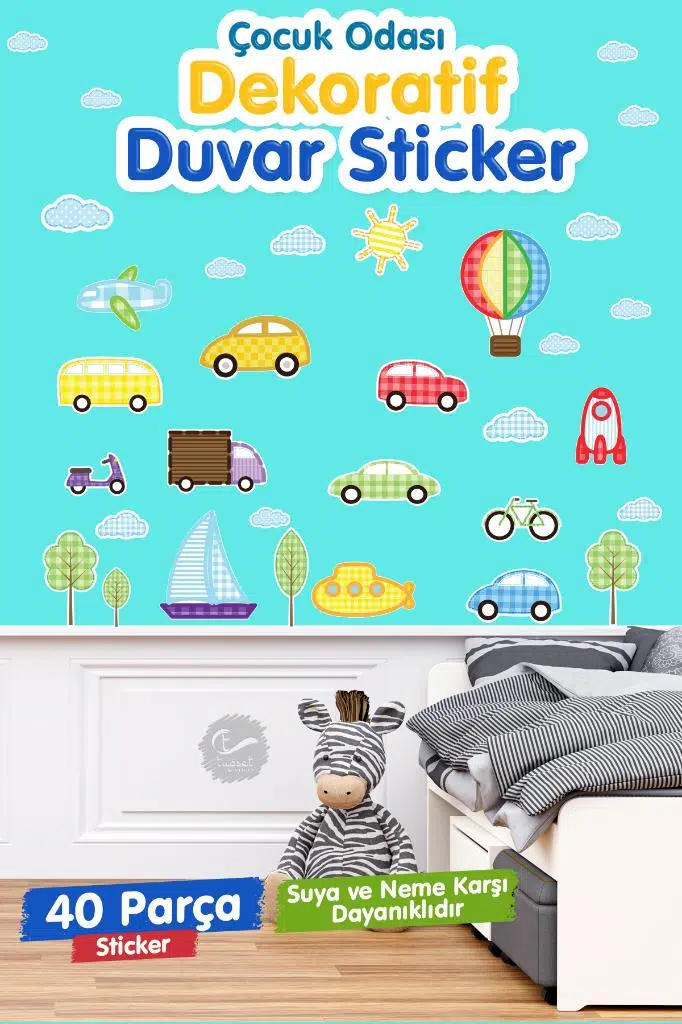 | Etiketler | Çocuk Odası Duvar Sticker Seti Doğada Araç Temalı |