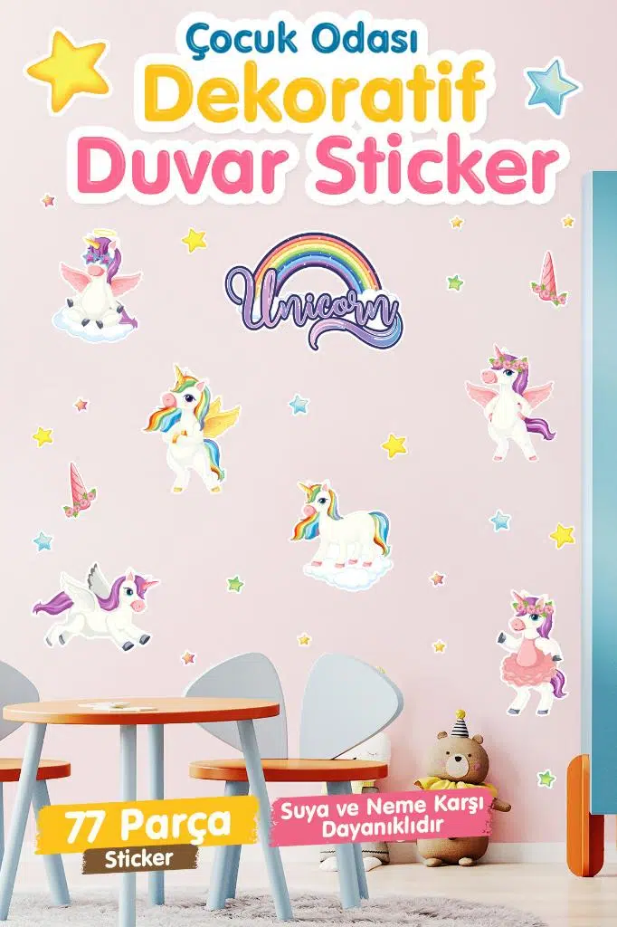 | Etiketler | Çocuk Odası Duvar Sticker Seti Unicorn Temalı Kız Çocuk |