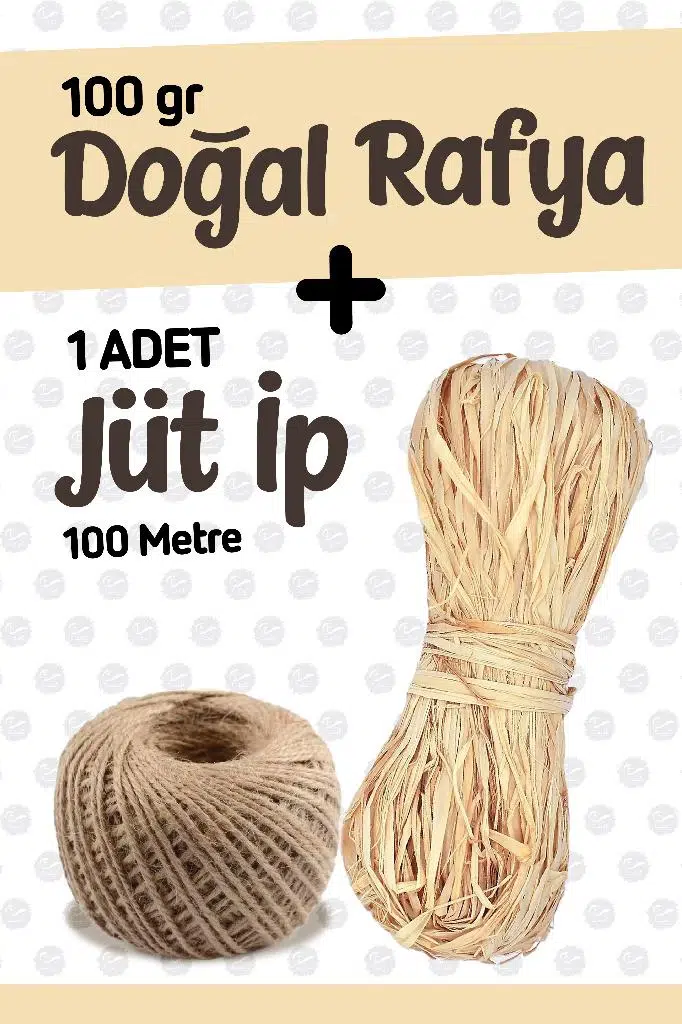 ÜRÜN İÇERİĞİ 1 ADET 100 METRE JÜT KIRNAP İPLİK VE 100 GRAM DOĞAL RAFYA MUZ SAMAN İPİDİR.