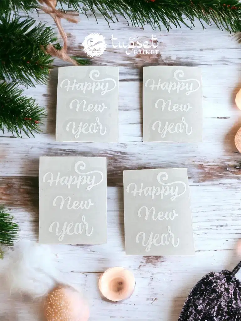| Etiketler | Happy New Year Beyaz Bardak Cam Etiketi 4 adet -Yenİ Yıl Etiketi |