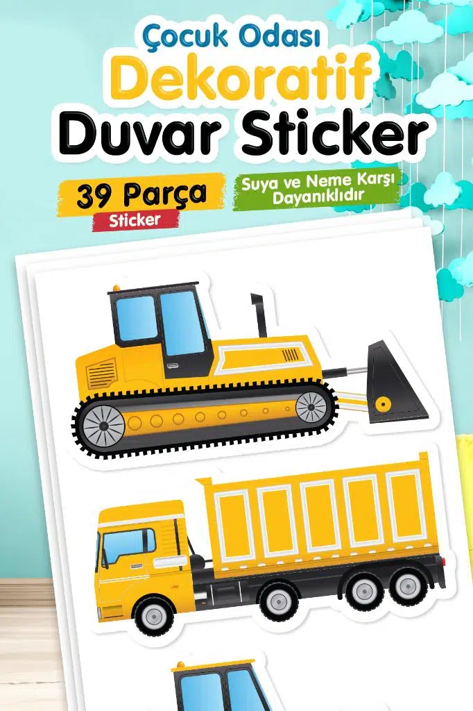 | Etiketler | İş Makineleri Çocuk Odası Duvar Etiketleri Duvar Sticker Seti Inşaat Araçları, Vinç, Kamyon, Buldozer |