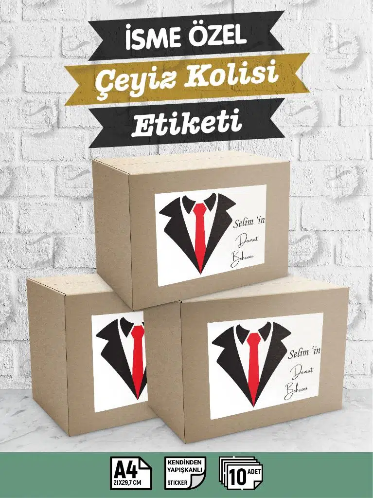 | Etiketler | İsimli Çeyiz Etiketi - A4 Ebat- 10'lu Paket Kendinden Yapışkanlı Çeyiz Kolisi Sticker -Damat Bohçası D2 |