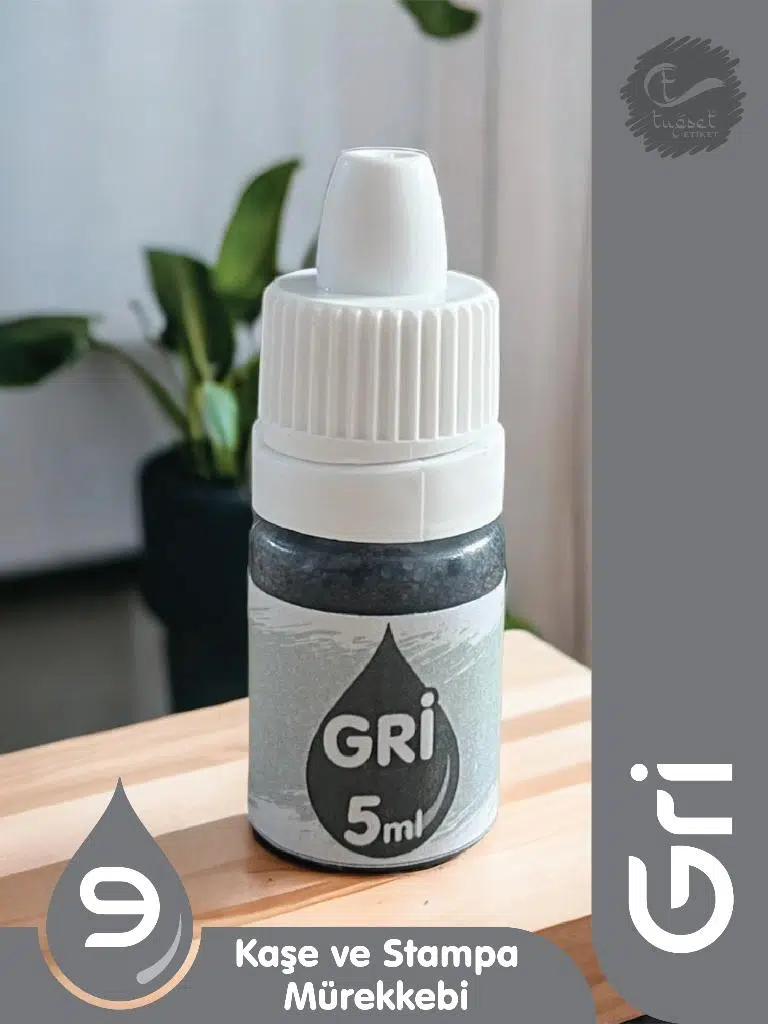 5 ml küçük ambalajda " Gri Renkli " ıstampa mürekkebidir.
