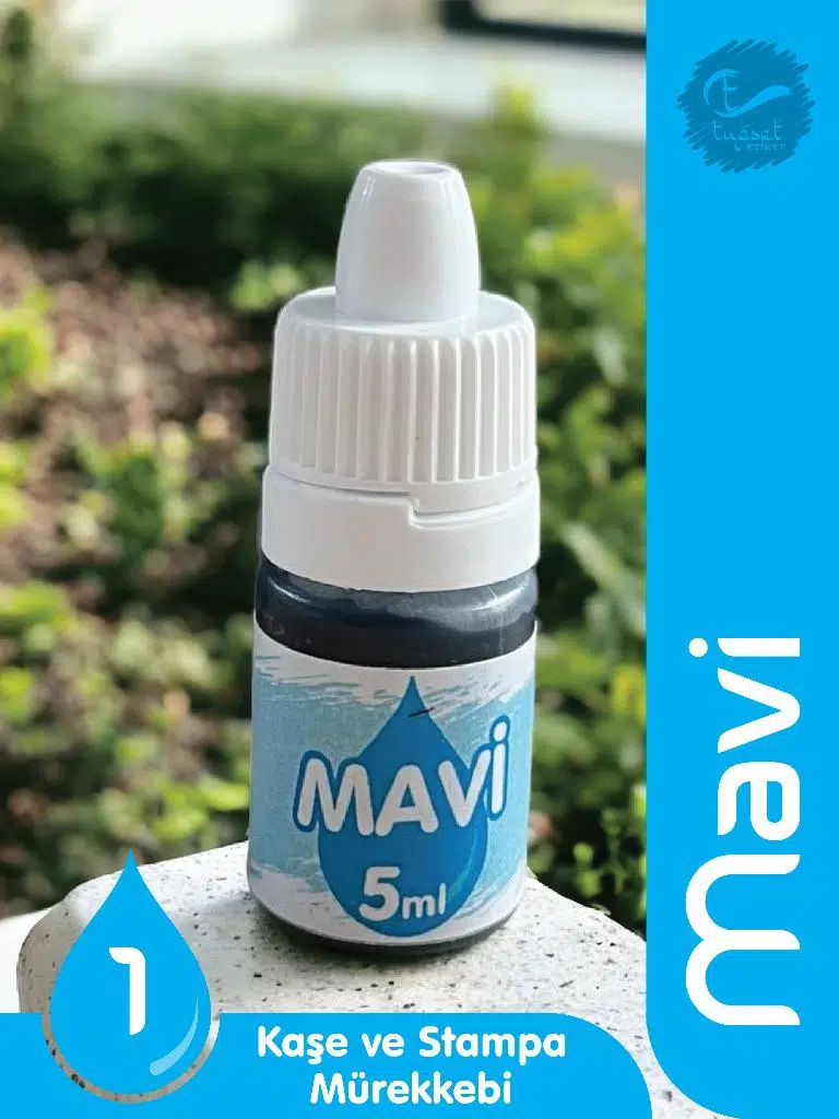 5 ml küçük ambalajda " Mavi Renkli " ıstampa mürekkebidir.