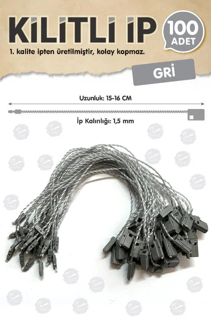 | Etiketler | Kilitli İp Renkli Asmalı Etiket Bağlama İpi Lock String Tag Rope 100 Adet Gri |