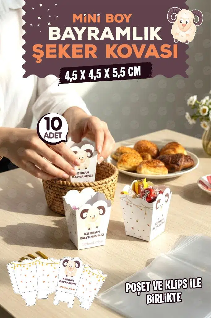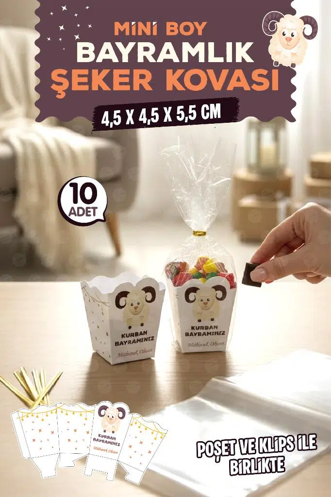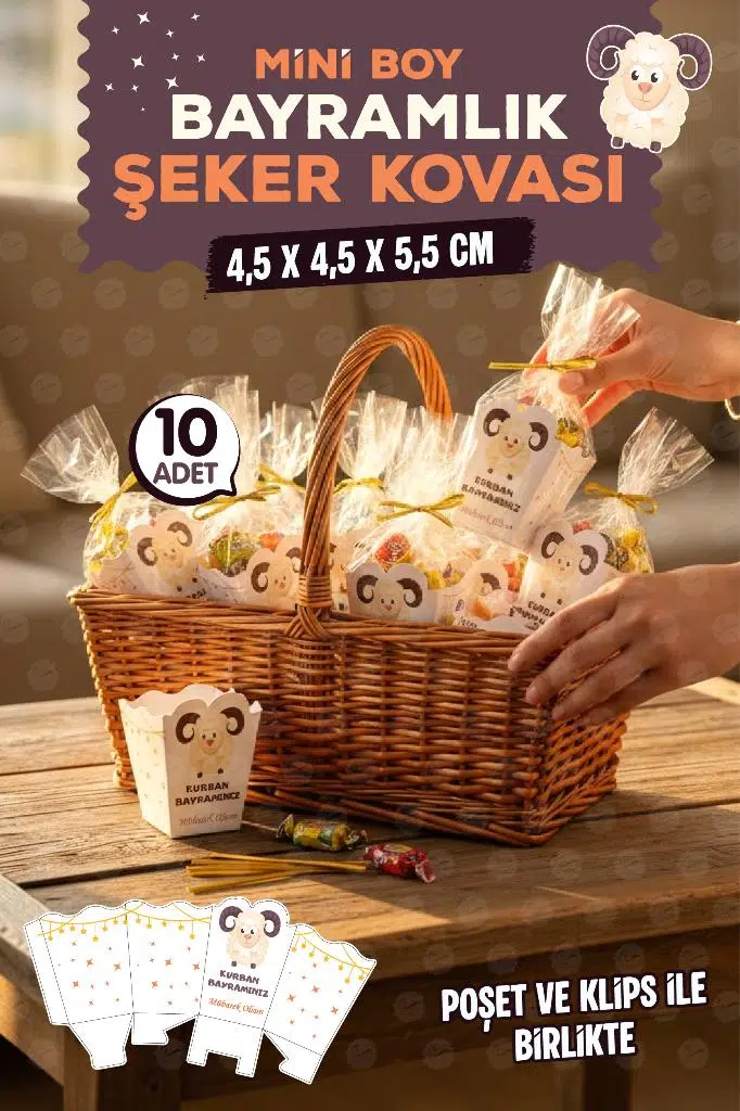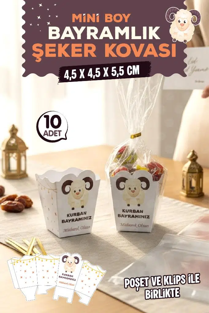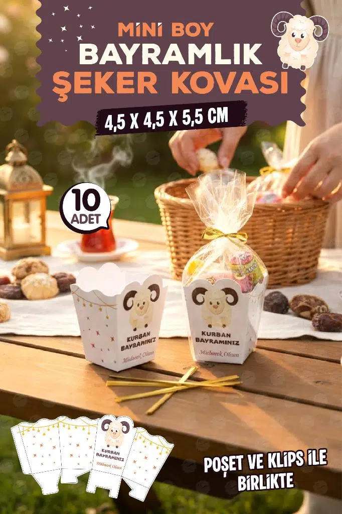| Etiketler | Mini Boy Bayramlık Şeker Harçlık Hediye Kovası Kurban Bayram Hediyesi Kutusu Poşeti ve Klipsi 10 ar Adet |