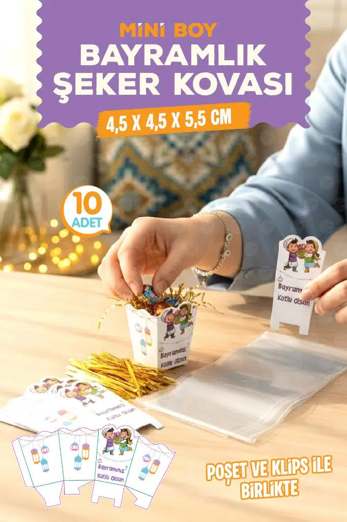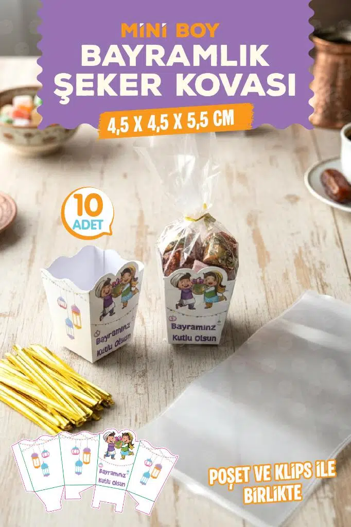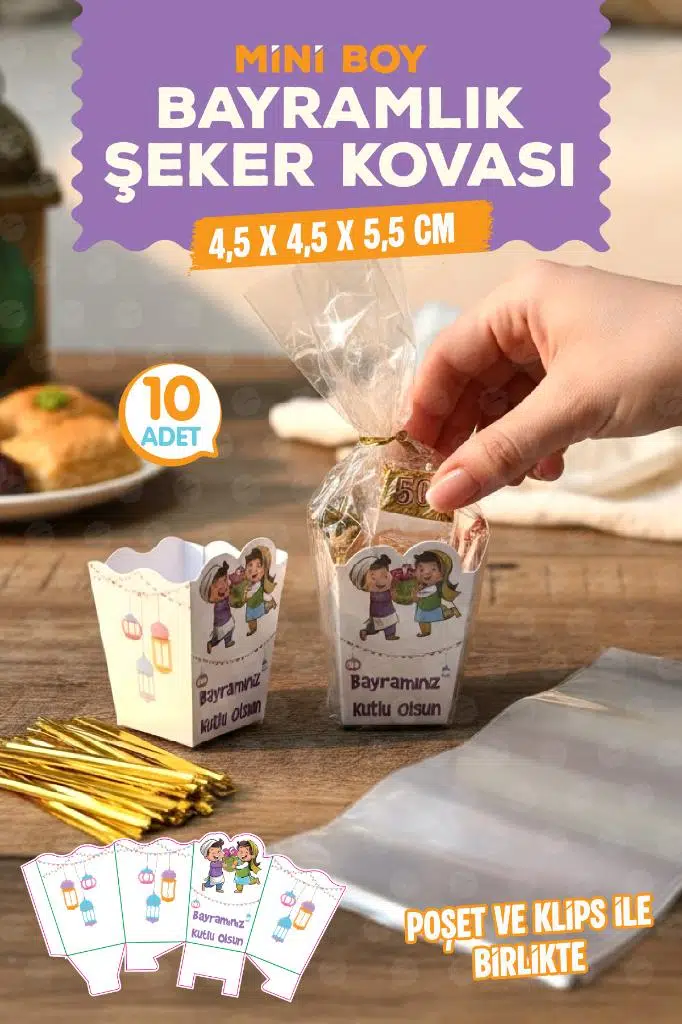 | Etiketler | Mini Boy Bayramlık Şeker Harçlık Kediye Kovası Bayram Hediyesi Kutusu Poşeti ve Klipsi 10 ar Adet |