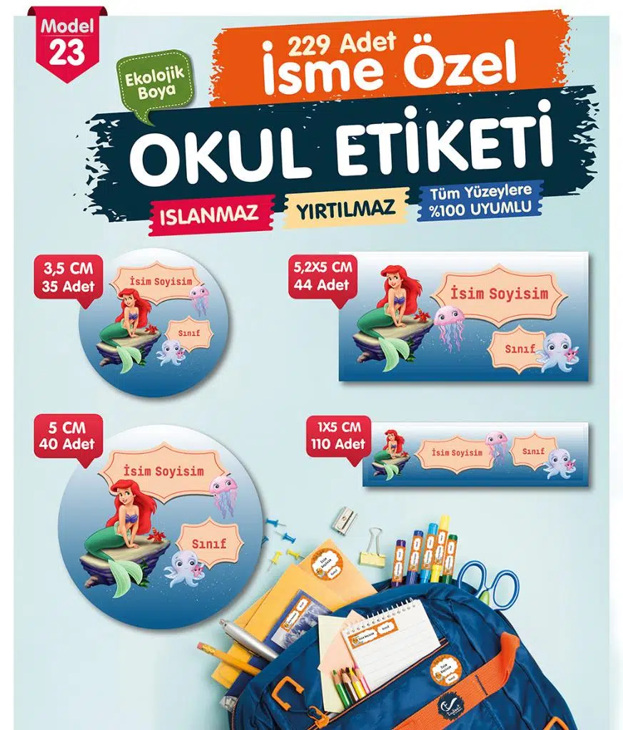 | Etiketler | Okul Etiketi Deniz Kızı Ariel Kalem Defter Etiketi Özel İsim Yazılabilen Etiket Seti - İsim Etiketi |