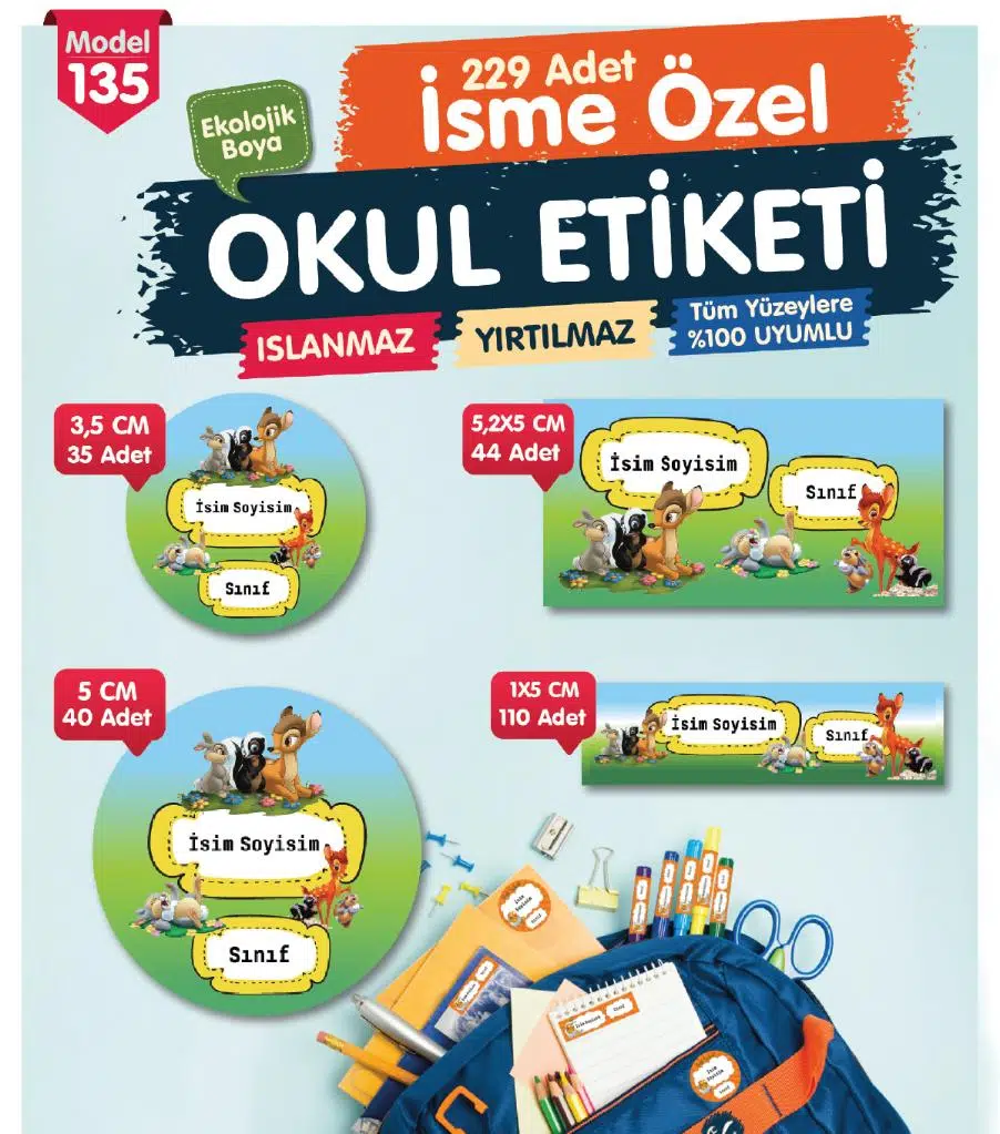 | Etiketler | Okul Etiketi Kalem Defter Etiketi Özel İsim Yazılabilen Etiket Seti - İsim Etiketi OE135 |