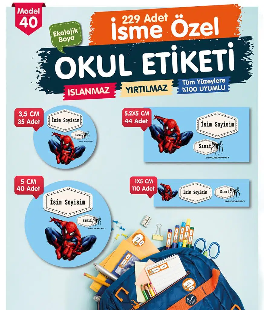 | Etiketler | Okul Etiketi Spider Man Örümcek Adam Kalem Defter Etiketi Özel İsim Yazılabilen Etiket Seti - İsim Etiketi |