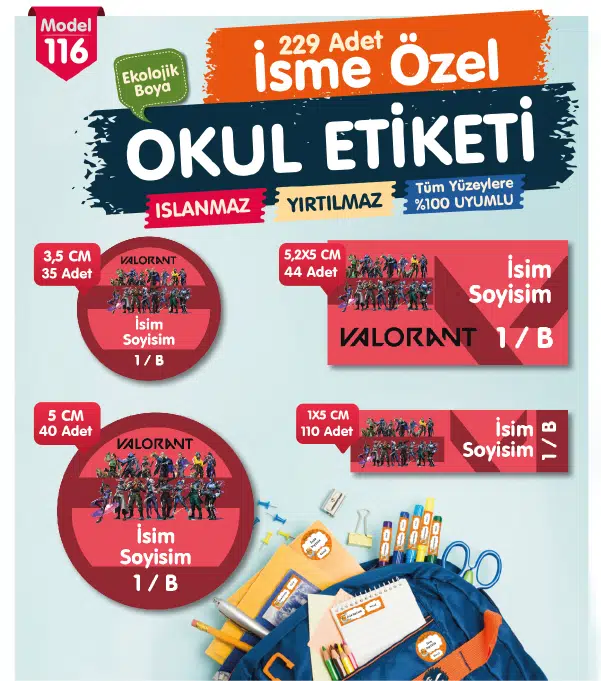 | Etiketler | Okul Etiketi Valorant Temalı Kalem Defter Etiketi Özel İsim Yazılabilen Etiket Seti - İsim Etiketi |