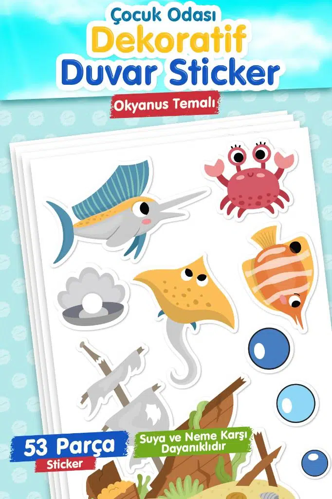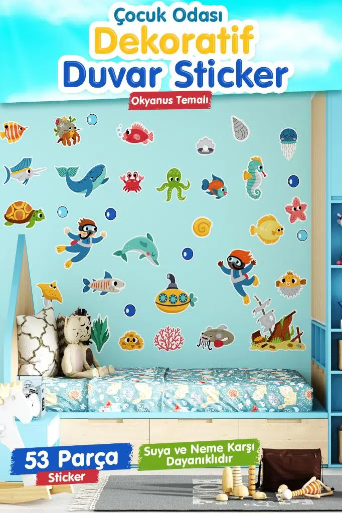 | Etiketler | Okyanus Temalı Çocuk Odası Duvar Sticker Seti |