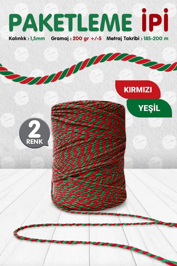 | Etiketler | Paketleme ipi / Bağlama İpi /İki Renkli İp Kırmızı Yeşil Renk 200 mt |