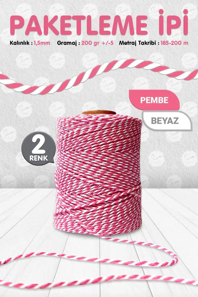 | Etiketler | Paketleme ipi / Bağlama İpi /İki Renkli Paketleme ipi Pembe Beyaz Renk 200 mt |