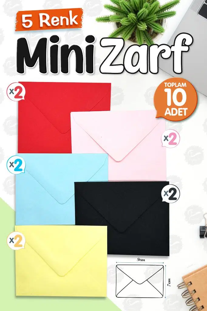 9x7 cm ölçüsünde 5 renk toplam 10 adet zarf