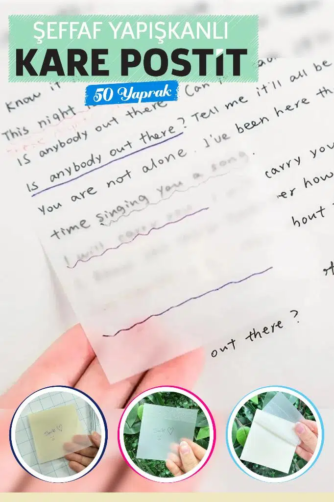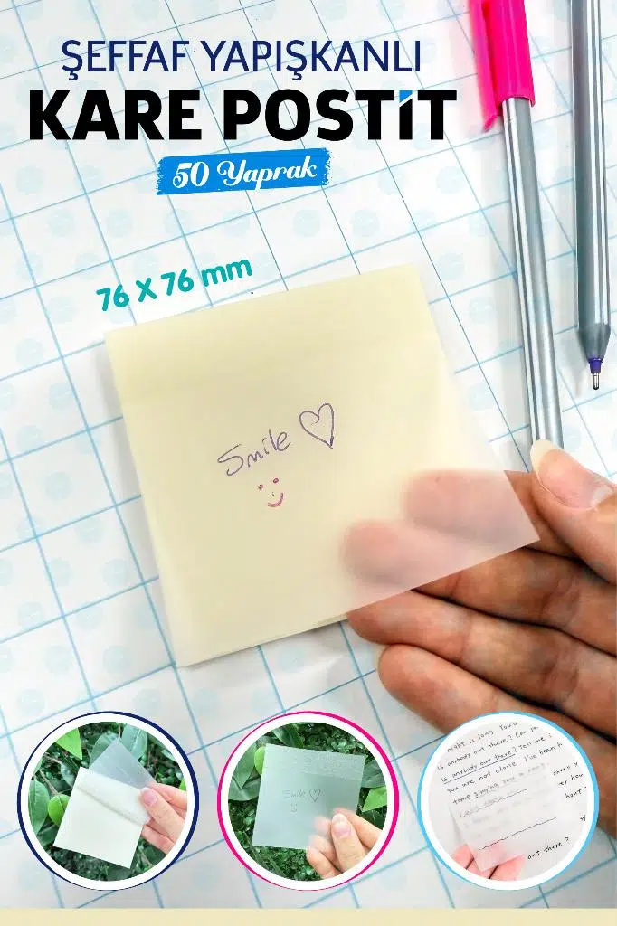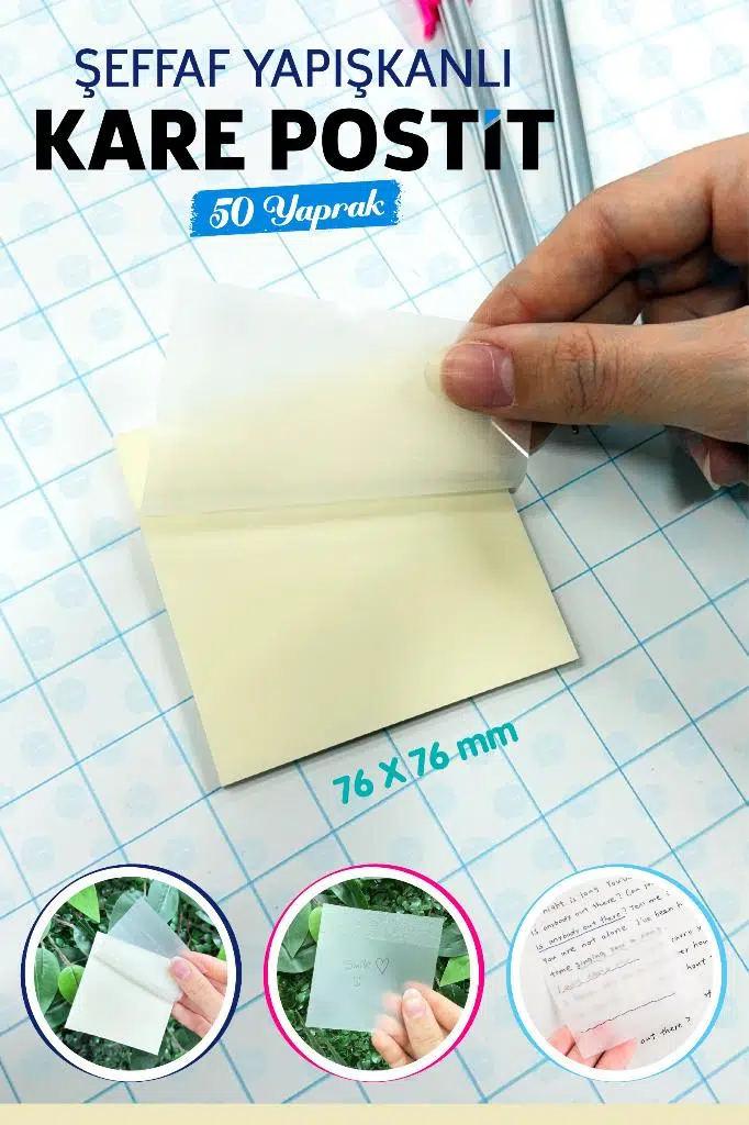 | Etiketler | Süper Şeffaf Yapışkanlı Kare Postit 50 Yaprak Transparan Karenot |