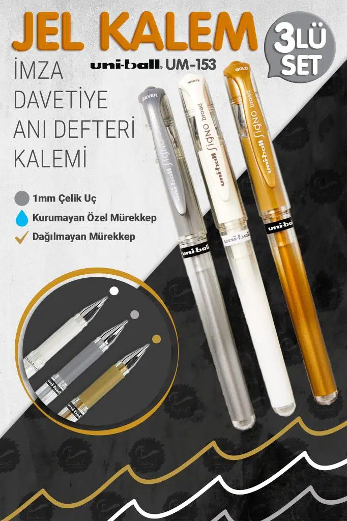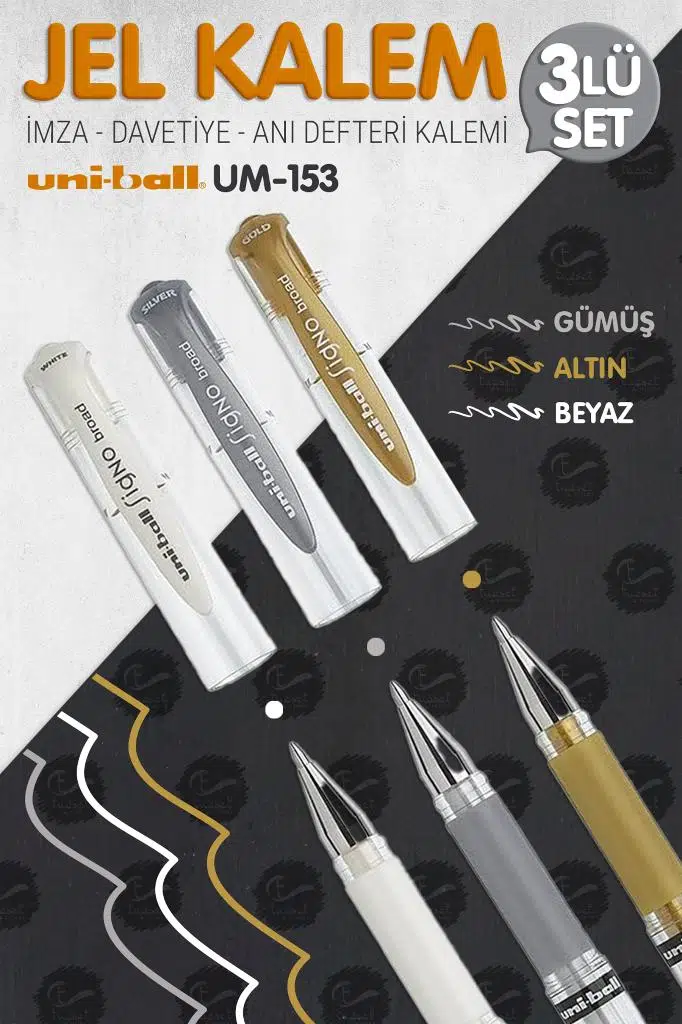 | Etiketler | Uni-Ball Um-153 Signo Broad Roller Kalem (GOLD,GÜMÜŞ,BEYAZ) 1.0 mm Davetiye Kalem Seti 3 lü /Beyaz Yazan Davetiye Anı Defteri Kalemi / İmza Kalemi / Jel Kalem |