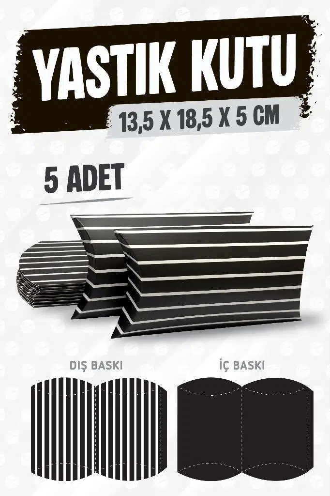 | Etiketler | Yastık Kutu Karton Çizgili Hediye Kutusu 13,5X18,5X5 CM 5 adet Siyah |