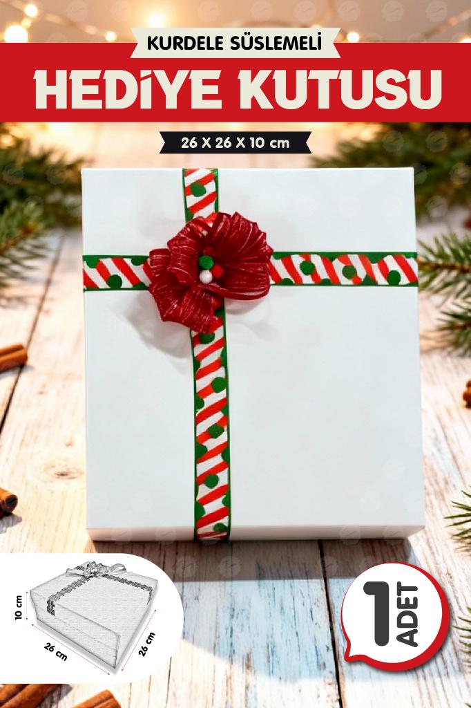 | Etiketler | Yılbaşı Temalı Kurdele Süslemeli Beyaz 25x25x10 cm Boş Hediye Kutusu 1Adet,Yılbaşı Hediye Kutusu |