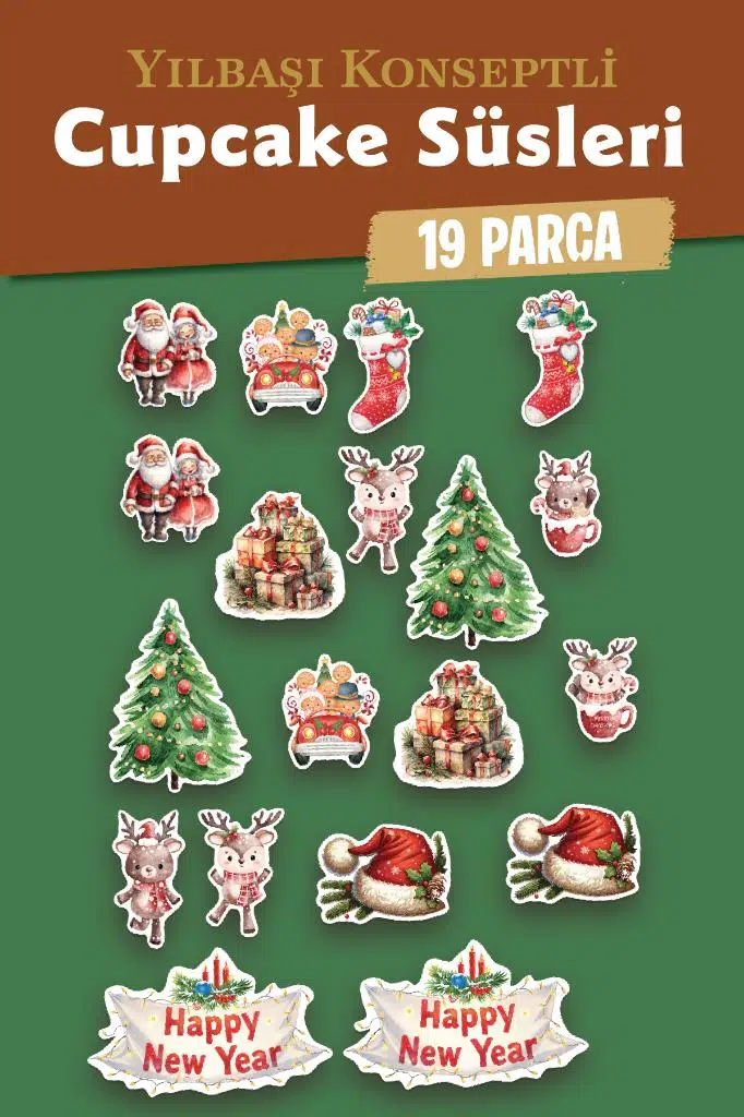 | Etiketler | Yılbaşı Yeni Yıl Kış Temalı Cupcake Süsü Kürdan Süsleri Lüks Büyük Boy 19 lu Paket Pasta |