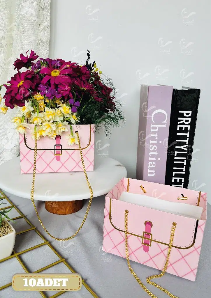 | Etiketler | Zincirli Çiçek Taşıma Çantası - Karton Çiçek Buket Çikolata Gül Hediye Kutusu Çanta Pembe 10 adet |